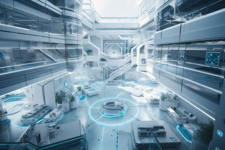 sweeping view of a futuristic hospital, with advanced medical equipment and personalized healthcare services, created with generative ai