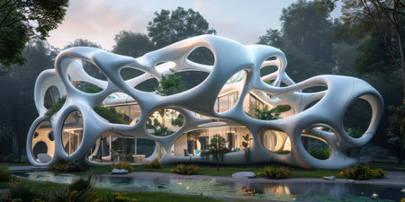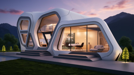 Conceptual futuristic modular house of the future. The project uses printing. The frame is made of environmental