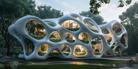A beautiful organic design merging contemporary architecture with vibrant, lush natural surroundings