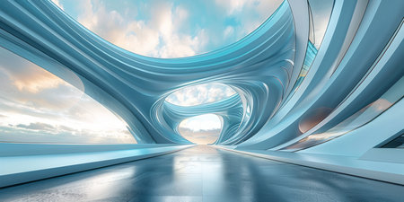 Clean and bright architectural space, modern architecture with a sense of technology.