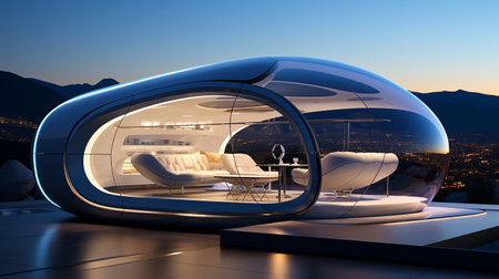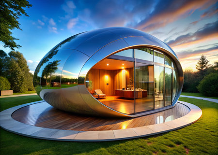 Futuristic beachfront pod: innovative modern architecture by the sea.