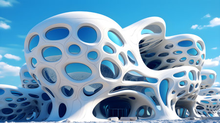 3D futuristic sci-fi white blue city architecture with organic skyscrapers, for science fiction or fantasy backgrounds, Abstract building, Generative AI illustration