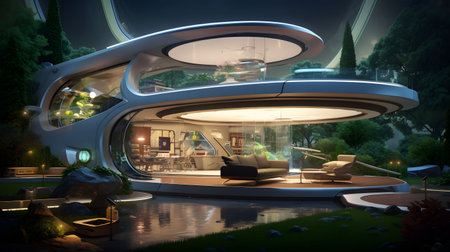 Futuristic house. Features high-tech labs, plants. Generative AI
