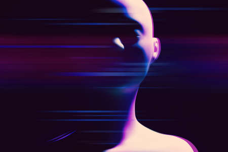 3d rendering of a female face in a futuristic style. Futuristic background.