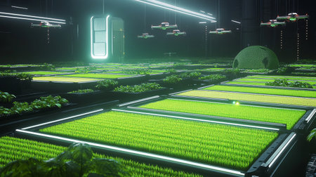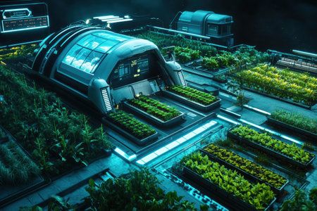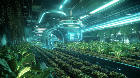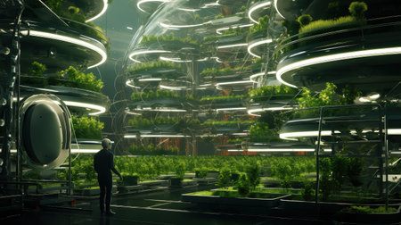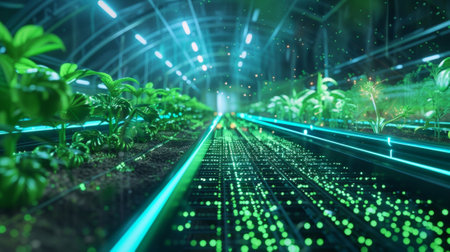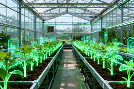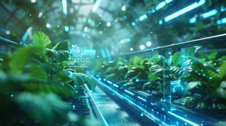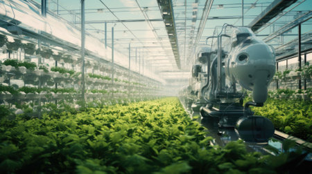 Futuristic greenhouse growing plants using artificial intelligence technology