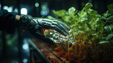 Technology plant machinery greenhouse industrial hand robot farming control agricultural concept