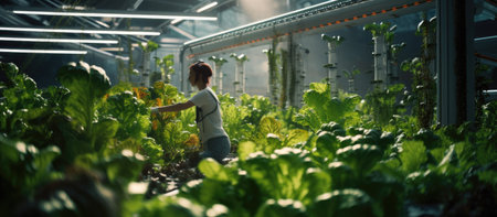 Young woman working in hydroponic farm. Selective focus.