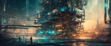 illustration digital painting of mega big factory, generative AI