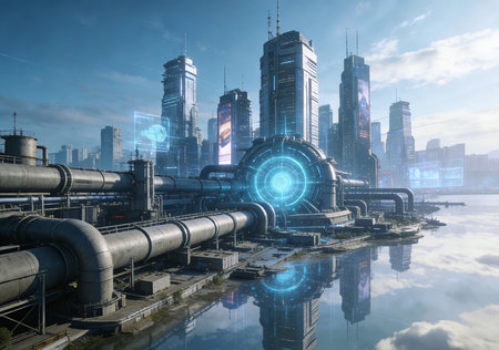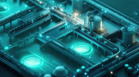 Smart wastewater treatment plant using AI technology for purification.