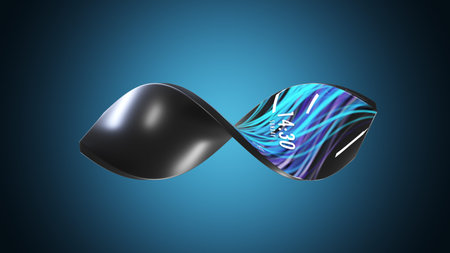 A sleek, colorful loop embodies limitless potential and ongoing connection, set against a gentle blue backdrop in a contemporary aesthetic.