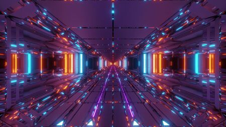 cool futuristic space scifi hangar tunnel corridor with nice reflections 3d illustration wallpaper background design, cool future sci-fi building 3d rendering art