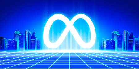 Meta Technology Abstract Background with Futuristic Surface and Glowing Icon. Metaverse world backdrop