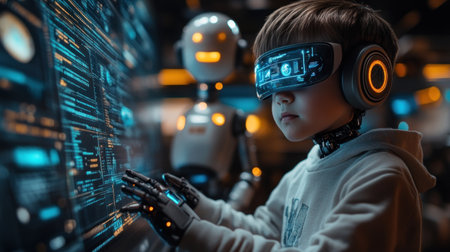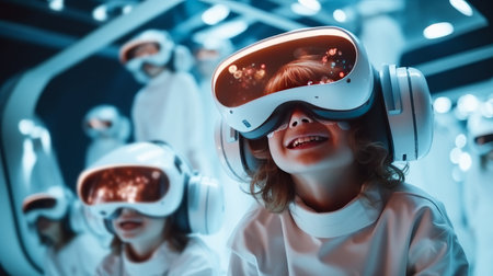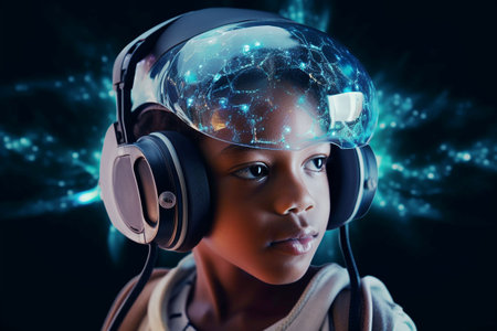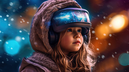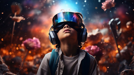 Child with VR headset exploring the metaverse, Generative AI Technology