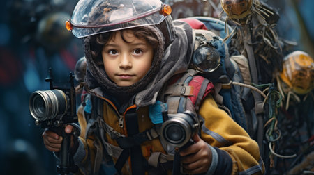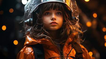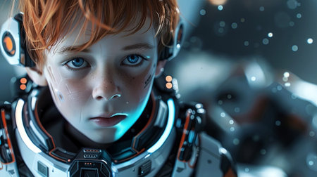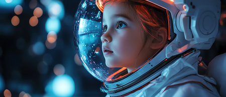 Embark on an interstellar journey through the eyes of a young space explorer, captured in stunning detail and ethereal lighting. The future is vivid and boundless. Generated A.I.
