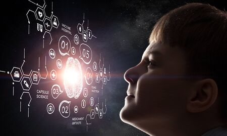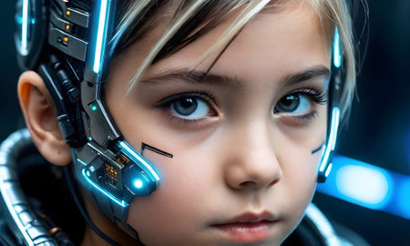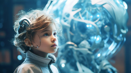 Conceptual artwork of a child and artificial intelligence fusion, showing the intersection of human potential and technological advancements.