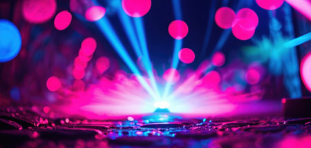 stage lighting effect in the dark with neon light rays and glowing effects