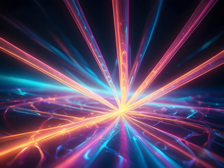 3d illustration of a colorful abstract background with glowing particles and rays