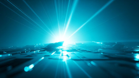 An AI generated illustration of an abstract space with glowing blue lights