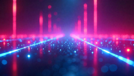 3d render of a laser show in a dark room with neon lights