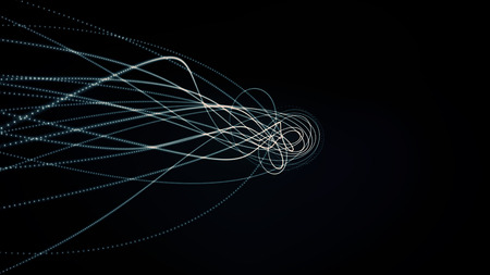 Image of light trails over black background. Abstract background and digital interface concept digitally generated image.