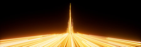 3d render, abstract neon wallpaper. Yellow glowing lines over black background. Streaming energy