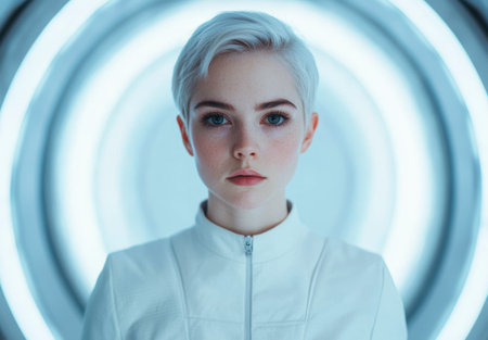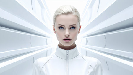 Futuristic portrait of a woman with short blonde hair