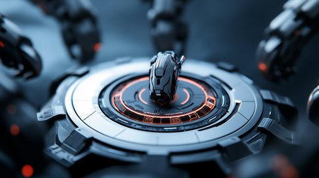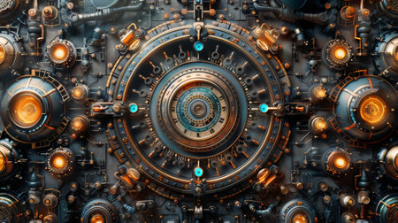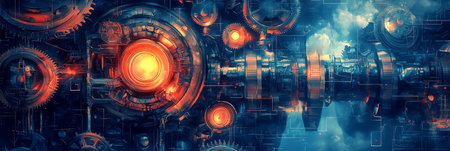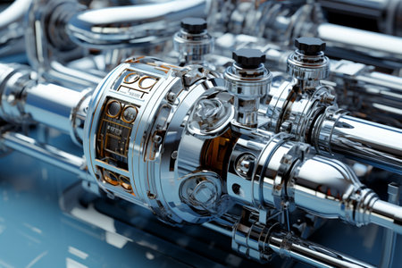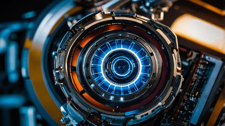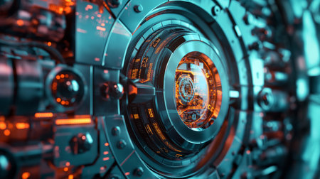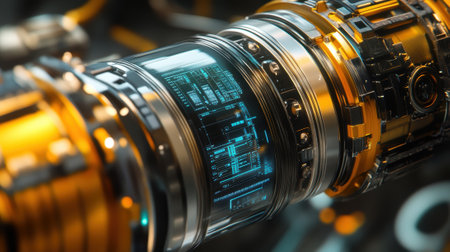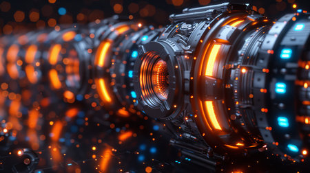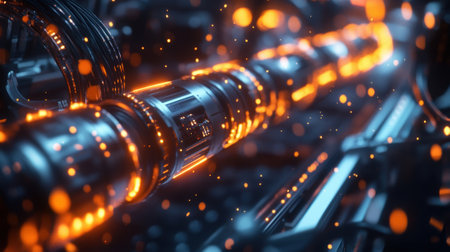 This visually striking image showcases an intricate industrial design featuring metallic textures, glowing elements, and an abstract background, highlighting modern creativity.