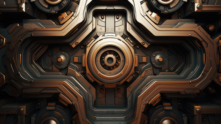 A captivating close-up image showcasing an intricate metallic texture with geometric patterns. Ideal for showcasing modern industrial design concepts and technology themes.