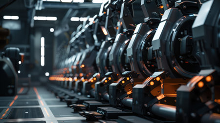 Innovative production line manufacturing futuristic equipment with automation and precision