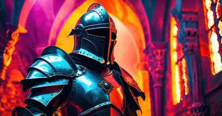 Knight in silver armor in gothic church cinematic HDR high detail K re Generative AI Generated