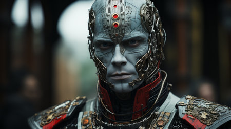 privacy barrier a man wearing armor and wearing red glasses and the concepts of safety and security