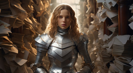 Medieval knight old woman hero. Armor warrior. Generate AI