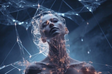 Abstract Mind Connection Network with Bare Shoulders on White