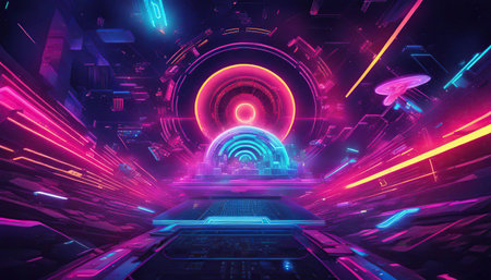 A stunning visual of a neon-lit tunnel showcases vibrant pink and blue lights racing towards a bright focal point. The glowing numbers create a sense of speed and excitement, inviting viewers into a dynamic digital world.
