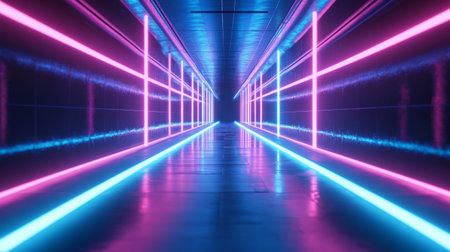 Futuristic corridor with glowing neon lights, 3d render illustration