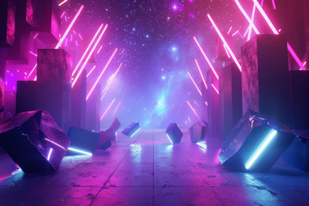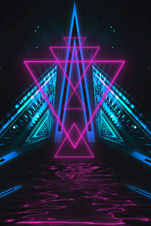 3d render, abstract background with neon lights, ultraviolet light, geometric shapes