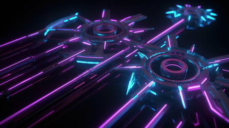 Futuristic Sci-Fi Abstract Neon Light Shapes On Black Background. AI generated content