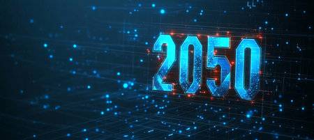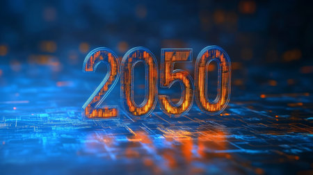 Year 2050 Glowing on Futuristic Technology Background, Concept for Digital Transformation.