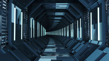 futuristic sci fi space corridor 3d rendering illustration background