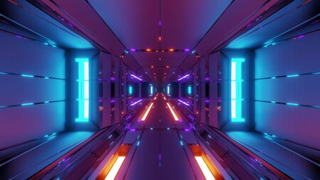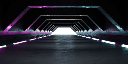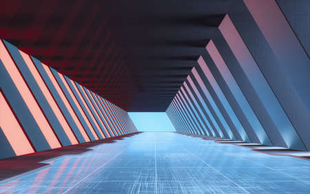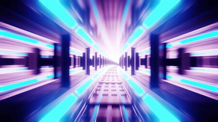 3D rendering of Futuristic scifi tunnel corridor with neon lights