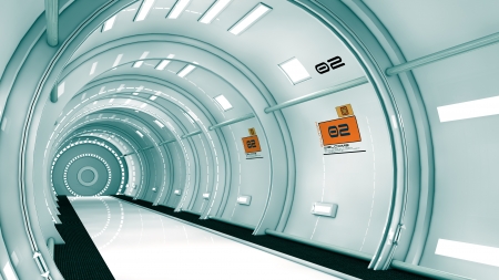 3D Illustration of a Spaceship gangway interior.