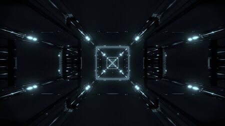Dark night Spaceship. Sci-Fi corridor. Technology background coucept, 3D render.