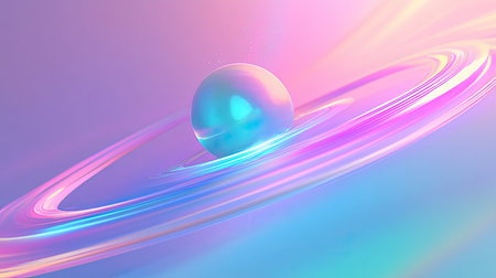 Iridescent sphere orbiting glowing futuristic purple and pink rings