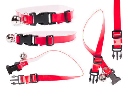 Collection of red dog collar isolated on a white background