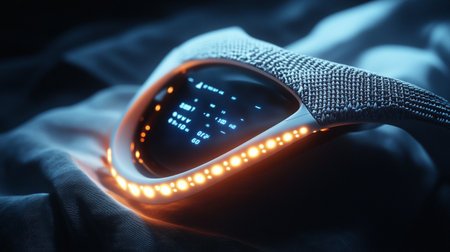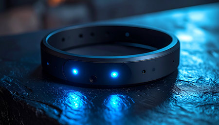 3d illustration of a modern smart watch with blue and red lights