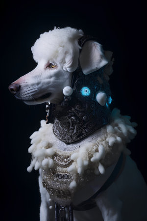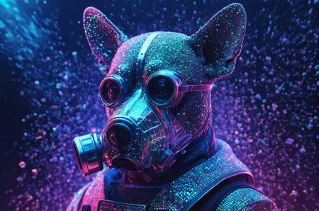 Futuristic dog with 3 D glasses. Generative AI.