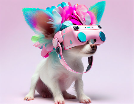 Tech-savvy dog with glasses exploring virtual reality