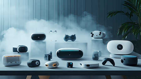 VR. Virtual Reality equipment on the table.