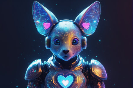 Futuristic Robotic Fox with Glowing Heart and Ears. Generative AI.