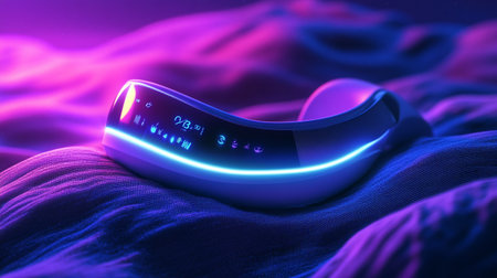 Digital fitness tracker on a dark background. 3D rendering. Neon light